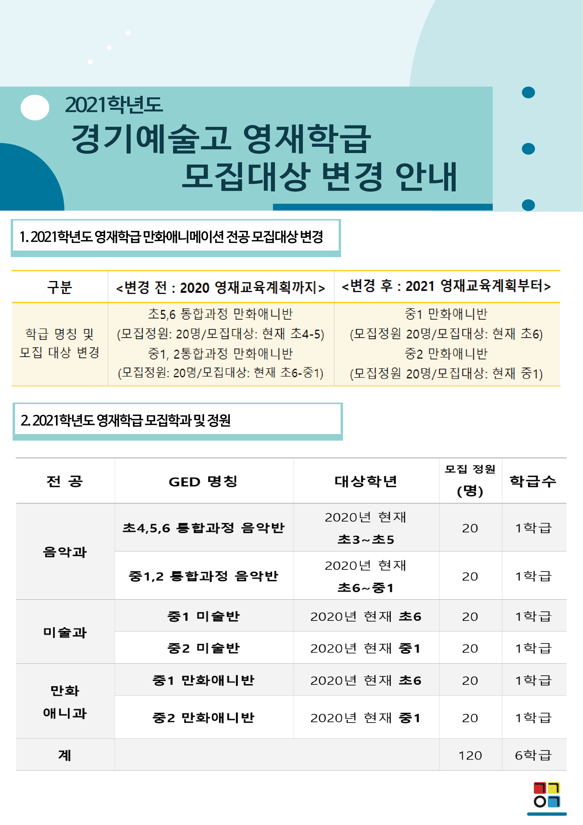 2021Çг⵵ °æ±â¿¹¼ú°í ¿µÀçÇÐ±Þ ¸ðÁý ´ë»ó º¯°æ »çÇ× ¾È³»