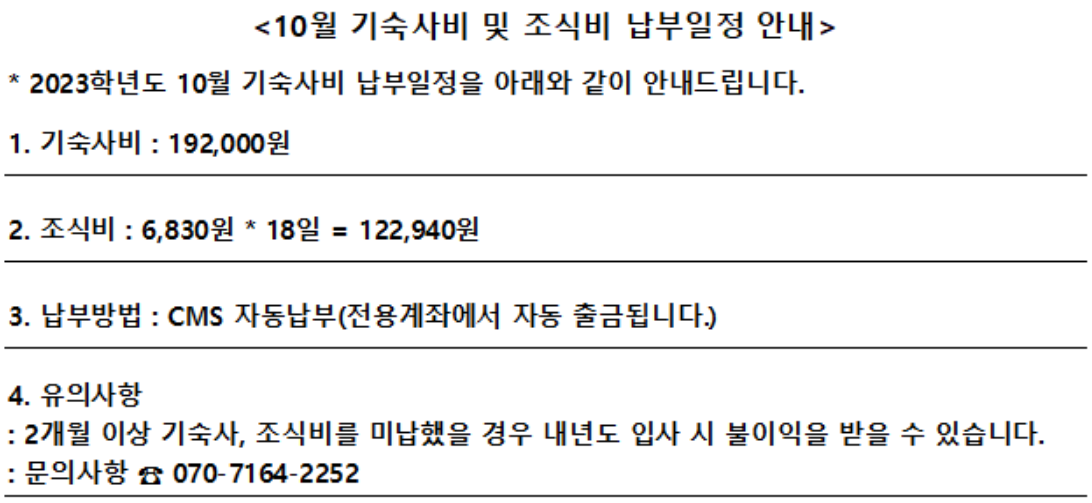 2023Çг⵵ 10¿ù ±â¼÷»çºñ ³³ºÎÀÏÁ¤ ¾È³»