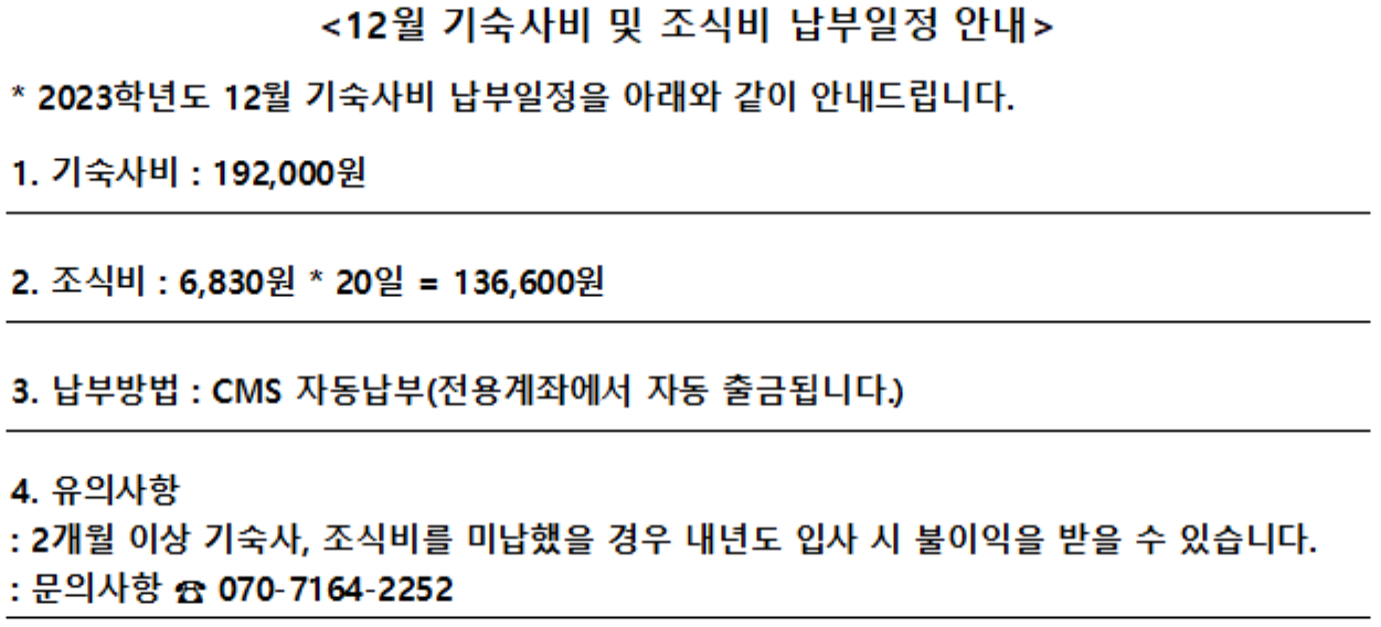 2023Çг⵵ 12¿ù ±â¼÷»çºñ ³³ºÎÀÏÁ¤ ¾È³»