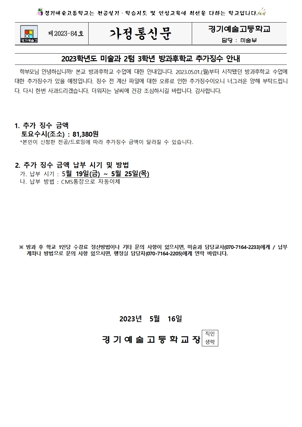 Á¦2023-84È£ 2023Çг⵵ ¹Ì¼ú°ú 2ÅÒ 3Çг⠹æ°úÈÄÇб³ Ãß°¡Â¡¼ö ¾È³»