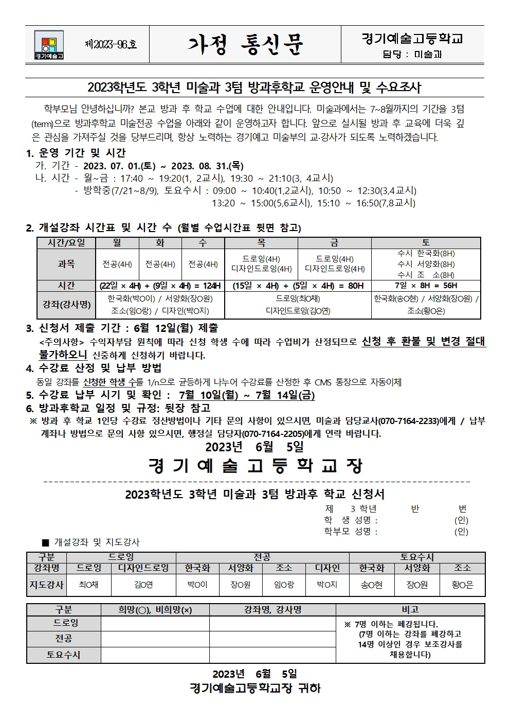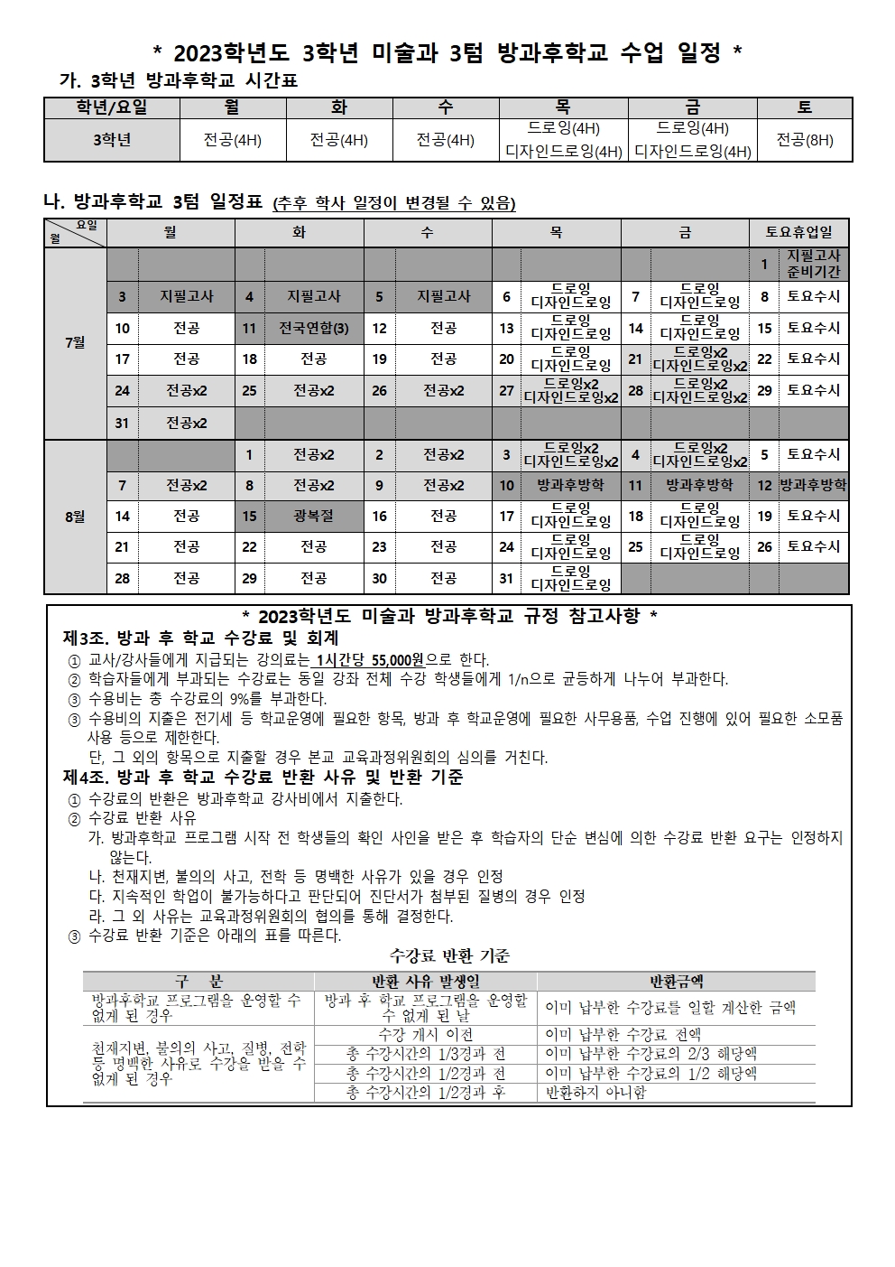 Á¦2023-95È£ 2023Çг⵵ 3Çг⠹̼ú°ú 3ÅÒ ¹æ°úÈÄÇб³ ¿î¿µ¾È³» ¹× ¼ö¿äÁ¶»ç