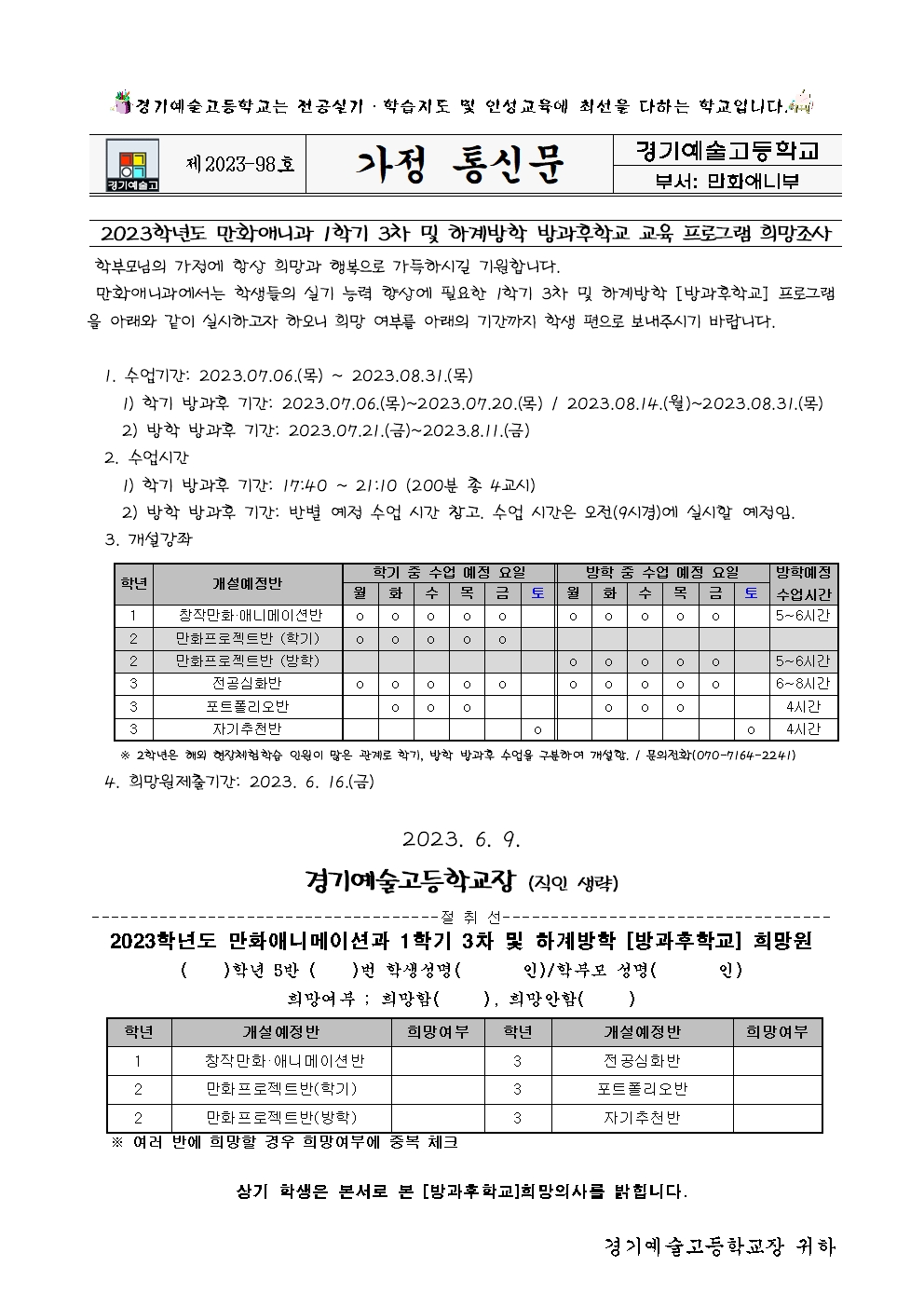 Á¦2023-98È£ 2023Çг⵵ ¸¸È­¾Ö´Ï¸ÞÀ̼ǰú 1Çбâ 3Â÷ ¹× ÇÏ°è¹æÇÐ ¹æ°úÈÄÇб³ ¼ö¿äÁ¶»ç