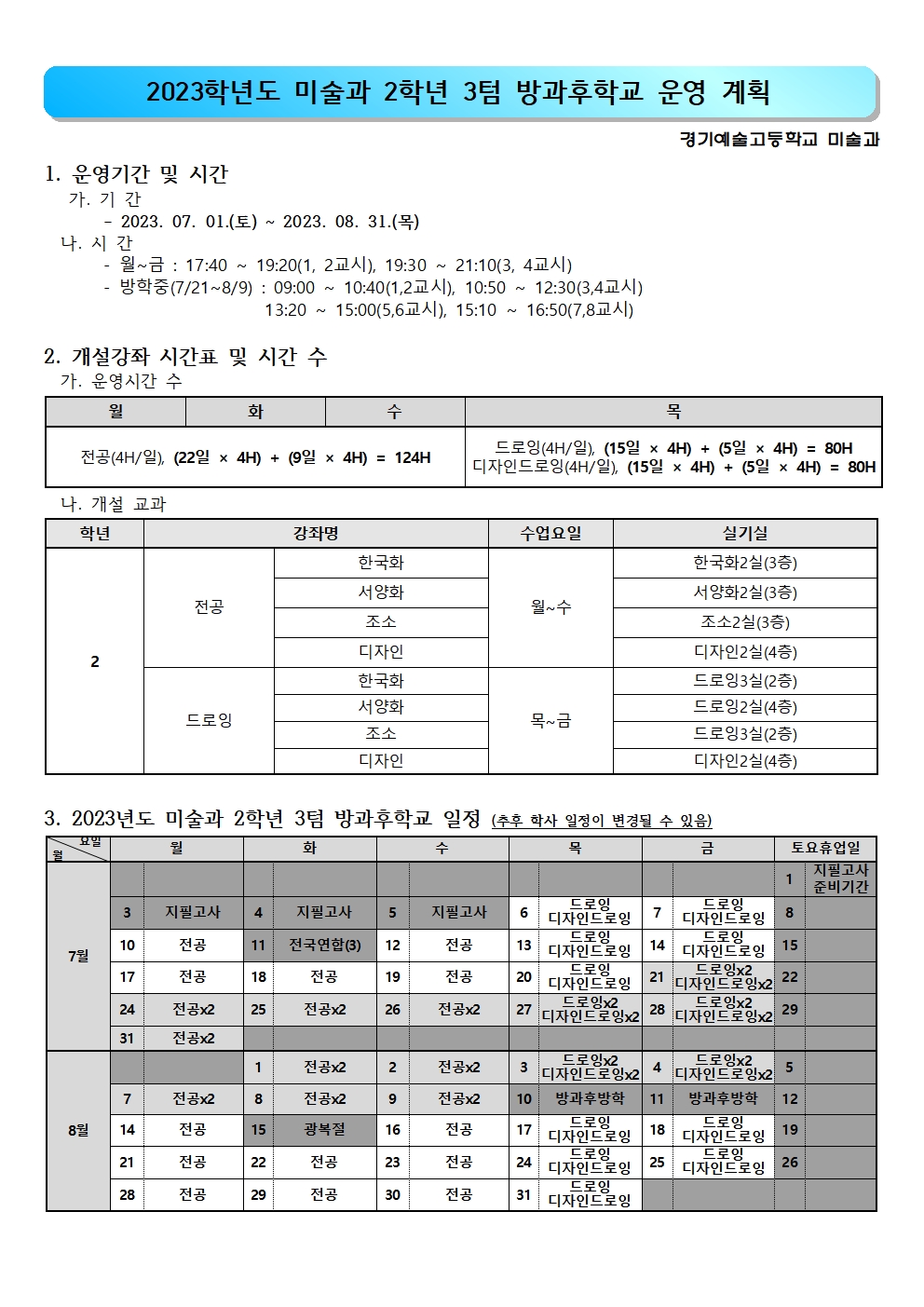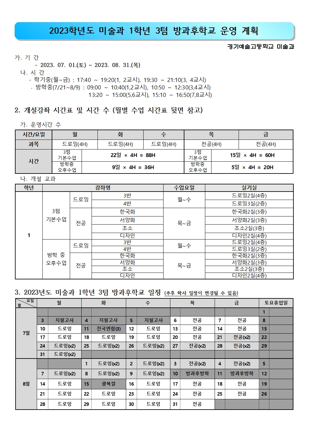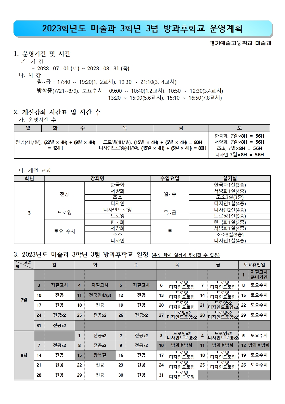 2023Çг⵵ ¹Ì¼ú°ú 3ÅÒ ¹æ°úÈÄÇб³ ¿î¿µ °èȹ