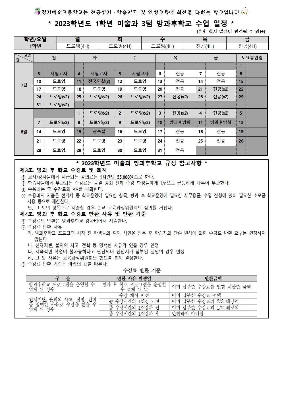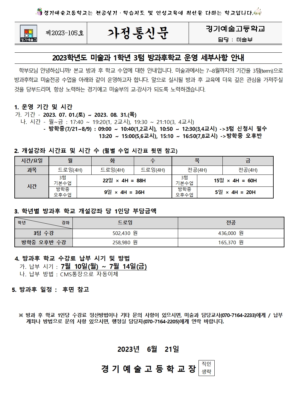 Á¦2023-105È£ 2023Çг⵵ ¹Ì¼ú°ú 1Çгâ 3ÅÒ ¹æ°úÈÄÇб³ ¿î¿µ ¼¼ºÎ»çÇ× ¾È³»
