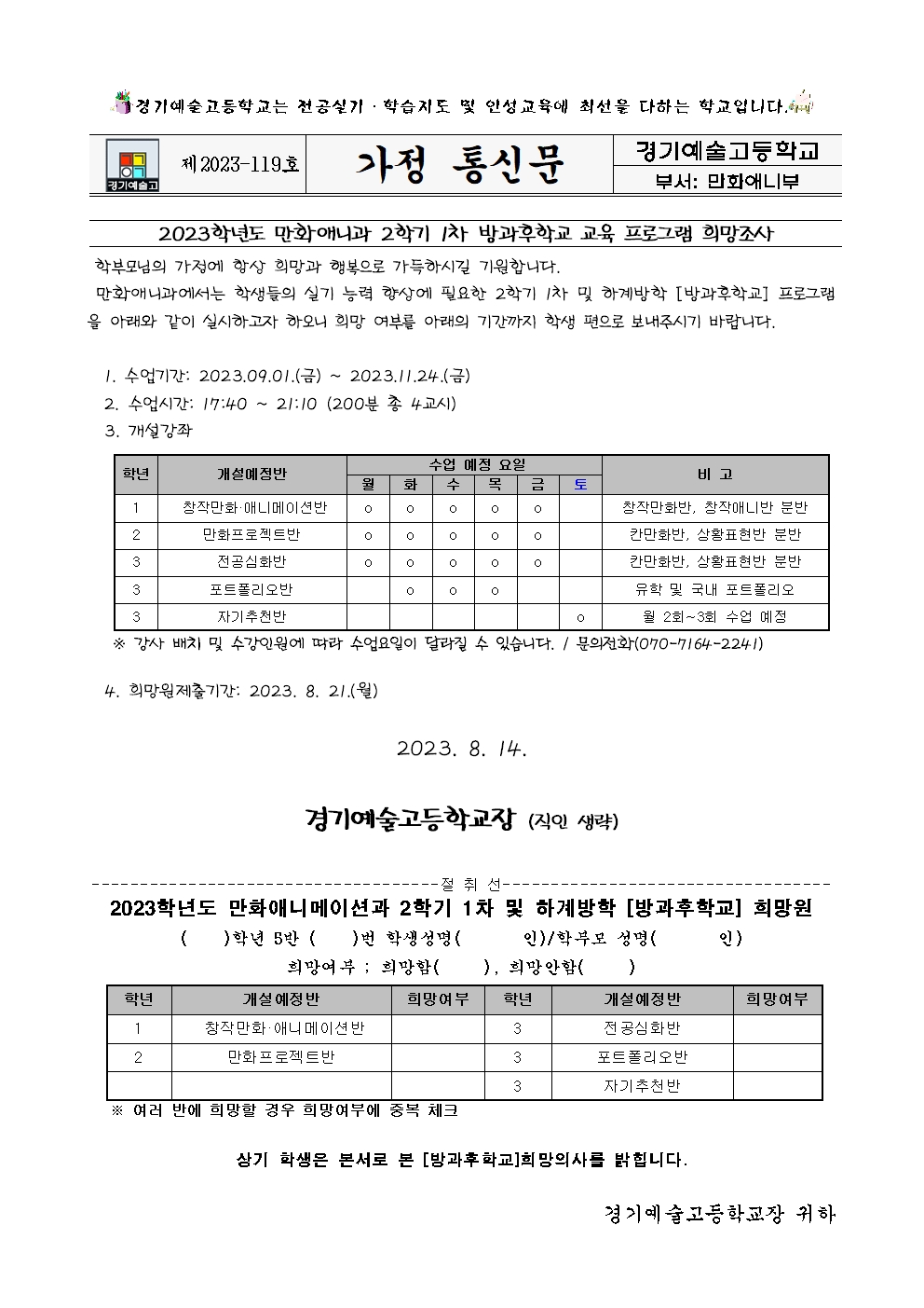 Á¦2023-119È£ 2023Çг⵵ ¸¸È­¾Ö´Ï¸ÞÀ̼ǰú 2Çбâ 1Â÷ ¹æ°úÈÄÇб³ ¼ö¿äÁ¶»ç