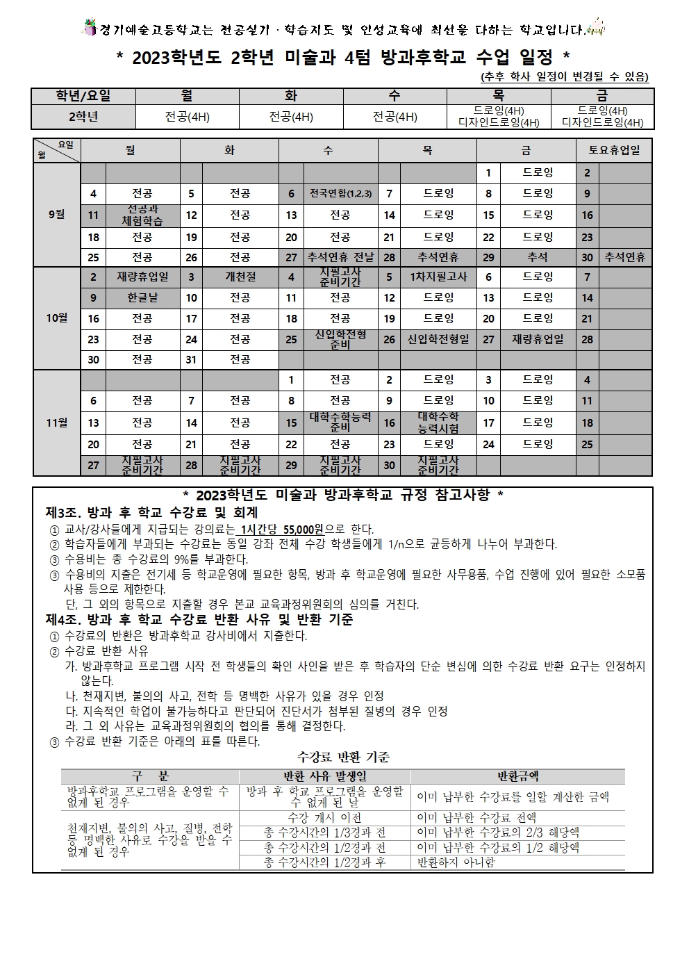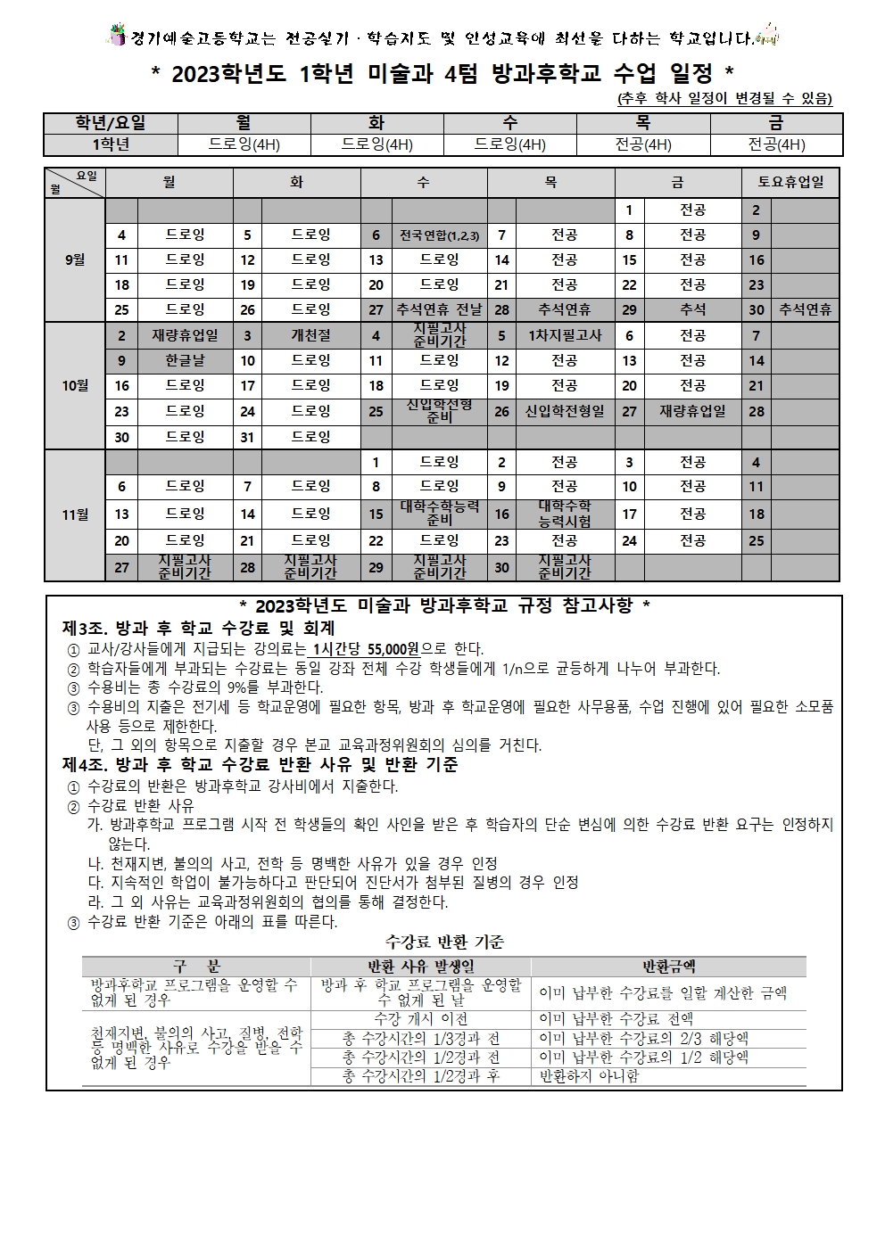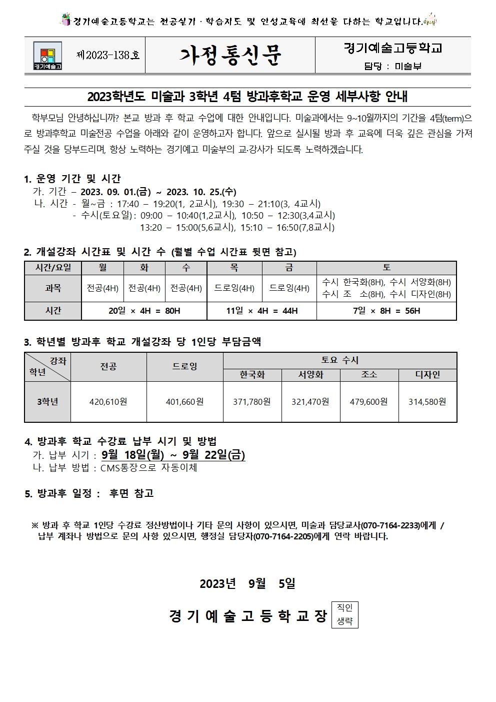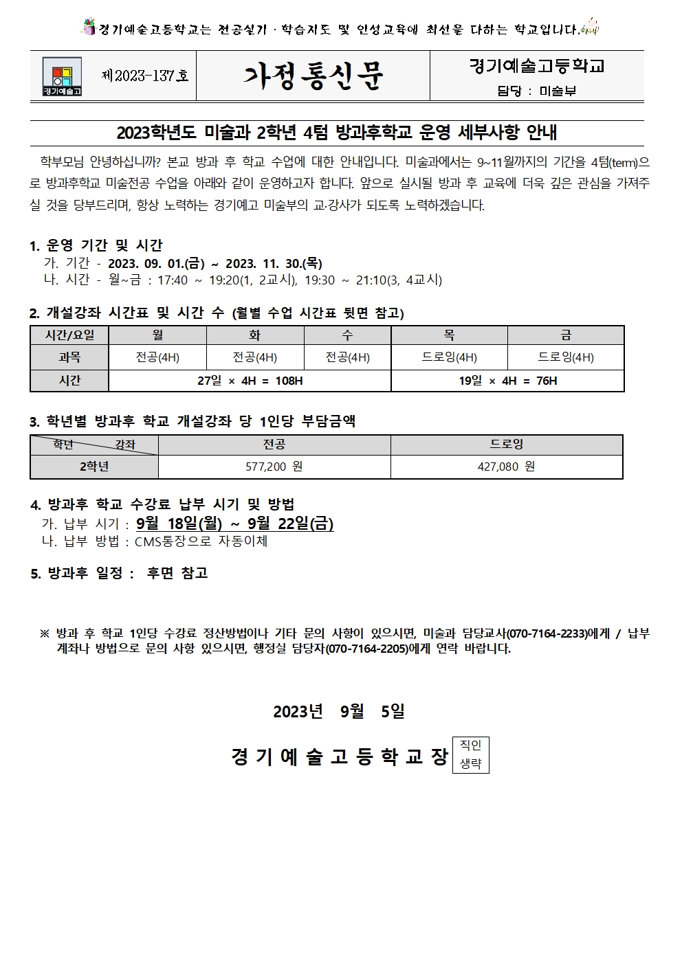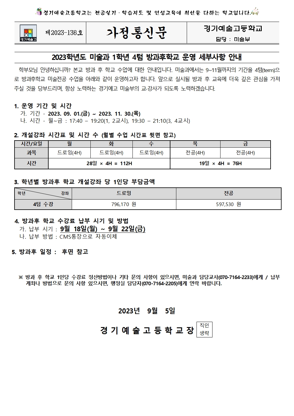 Á¦2023-136,137,138È£ 2023Çг⵵ ¹Ì¼ú°ú 4ÅÒ ¹æ°úÈÄÇб³ ¿î¿µ ¼¼ºÎ»çÇ× ¾È³» °¡Á¤Åë½Å¹®