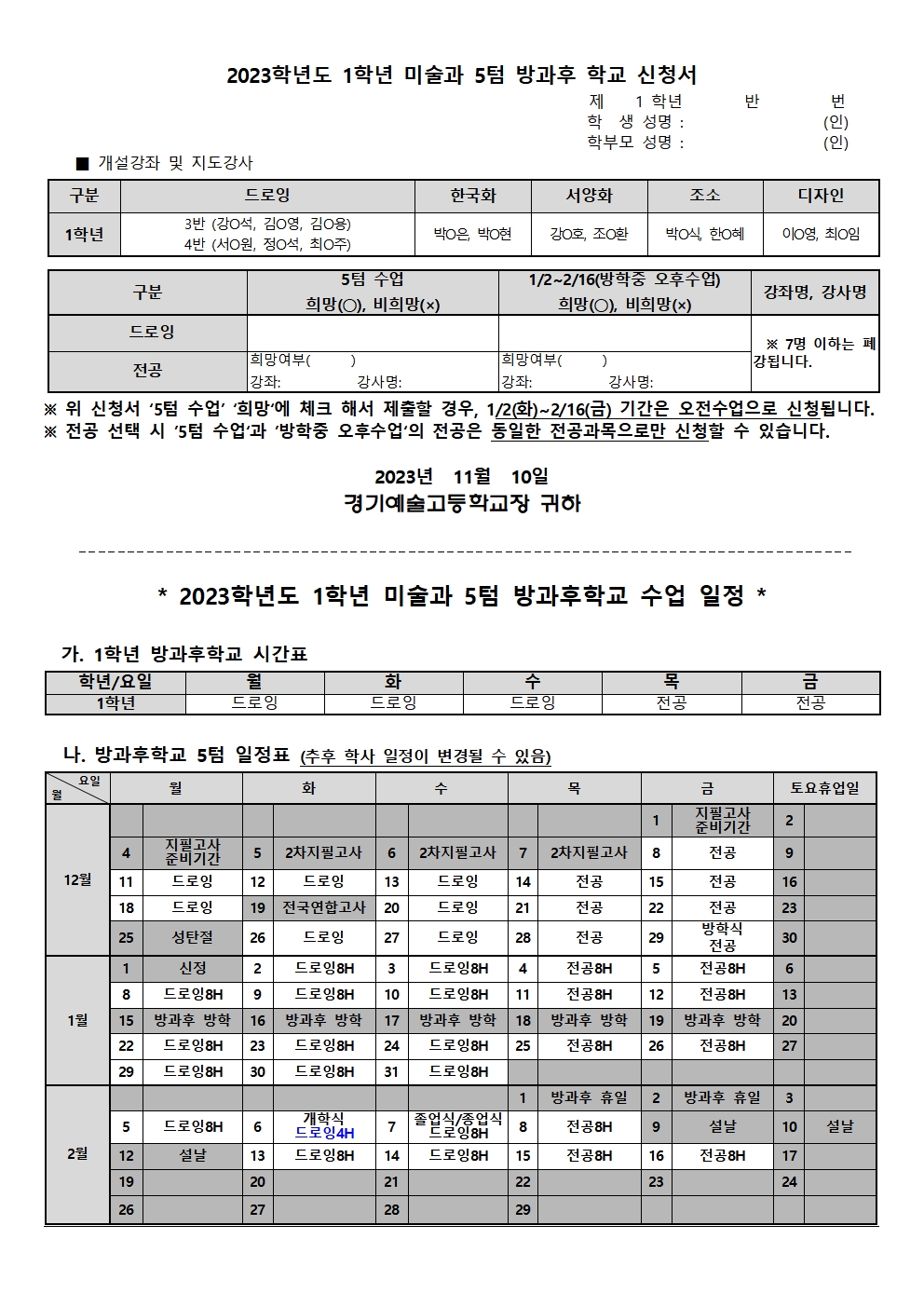 Á¦2023-179È£ 2023Çг⵵ ¹Ì¼ú°ú 1Çгâ 5ÅÒ ¹æ°úÈÄÇб³ ¿î¿µ¾È³» ¹× ¼ö¿äÁ¶»ç