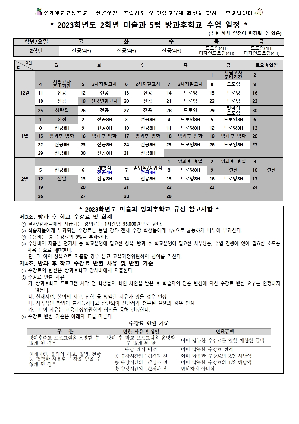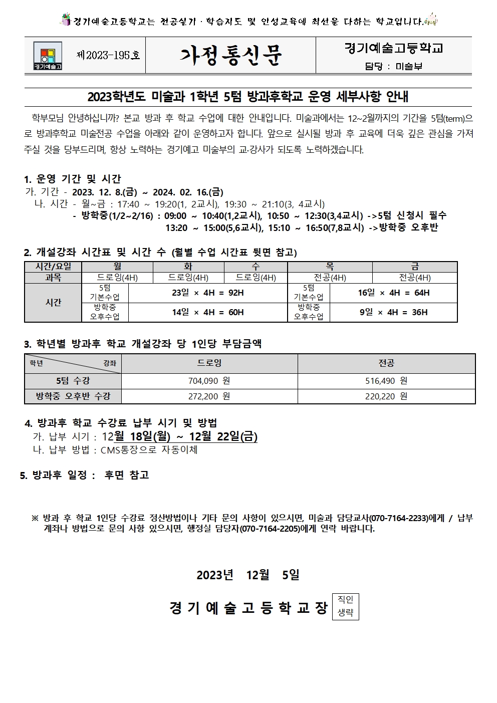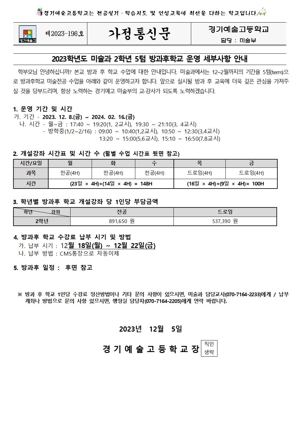 Á¦2023-195, 196È£ 2023Çг⵵ ¹Ì¼ú°ú 1,2Çгâ 5ÅÒ ¹æ°úÈÄÇб³ ¿î¿µ ¼¼ºÎ»çÇ× ¾È³»