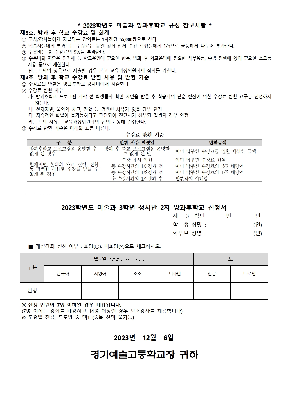 Á¦2023-199È£ 2023Çг⵵ ¹Ì¼ú°ú 3Çгâ Á¤½Ã¹Ý 2Â÷ ¹æ°úÈÄÇб³ ¿î¿µ ¾È³» ¹× ¼ö¿äÁ¶»ç