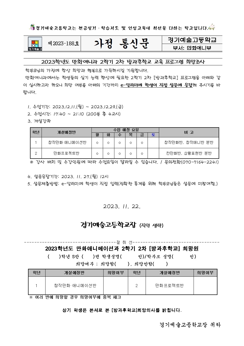 Á¦2023-188È£ 2023Çг⵵ ¸¸È­¾Ö´Ï°ú 2Çбâ 2Â÷ ¹æ°úÈÄÇб³ ±³À° ÇÁ·Î±×·¥ Èñ¸ÁÁ¶»ç