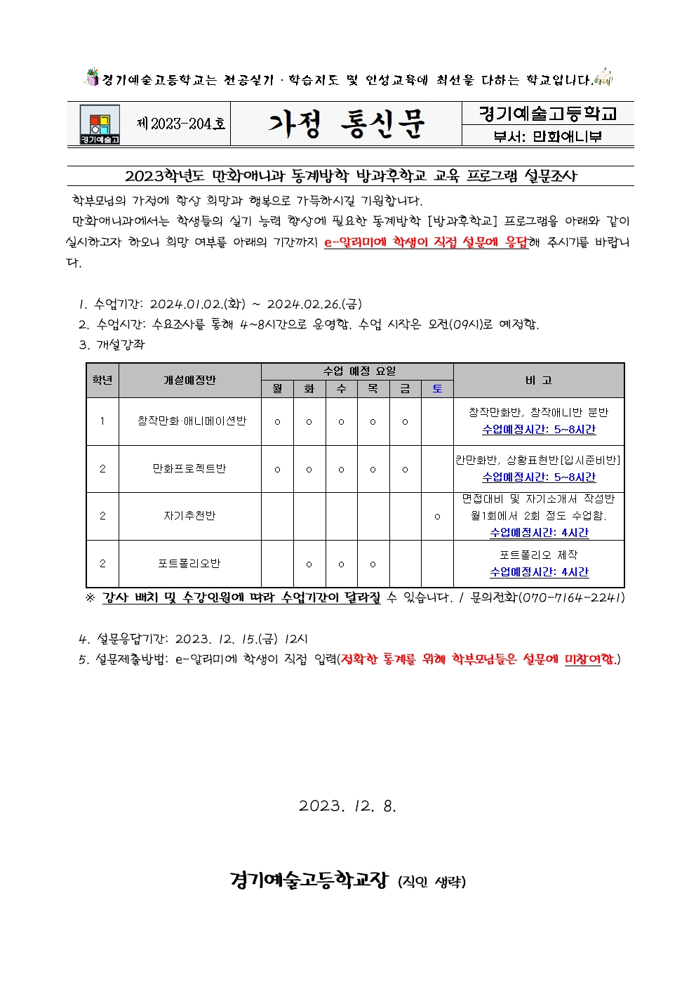 Á¦2023-204È£ 2023Çг⵵ ¸¸È­¾Ö´Ï¸ÞÀ̼ǰú µ¿°è¹æÇÐ ¹æ°úÈÄÇб³ ¼ö¿äÁ¶»ç