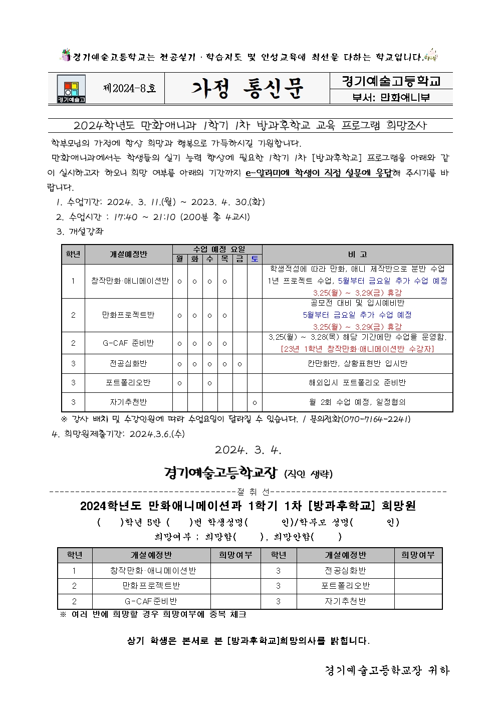 Á¦2024-8È£ 2024Çг⵵ ¸¸È­¾Ö´Ï¸ÞÀ̼ǰú 1Çбâ 1Â÷ ¹æ°úÈÄÇб³ ¼ö¿äÁ¶»ç