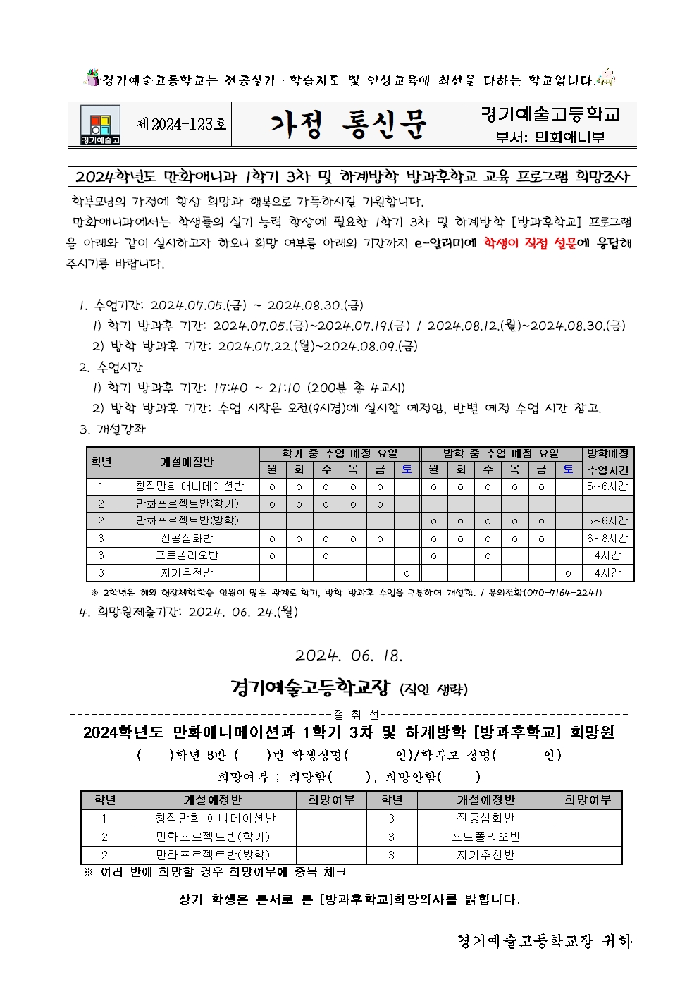 Á¦2024-123È£ 2024Çг⵵ ¸¸È­¾Ö´Ï°ú 1Çбâ 3Â÷ ¹× ÇÏ°è¹æÇÐ ¹æ°úÈÄÇб³ ±³À° ÇÁ·Î±×·¥ Èñ¸ÁÁ¶»ç