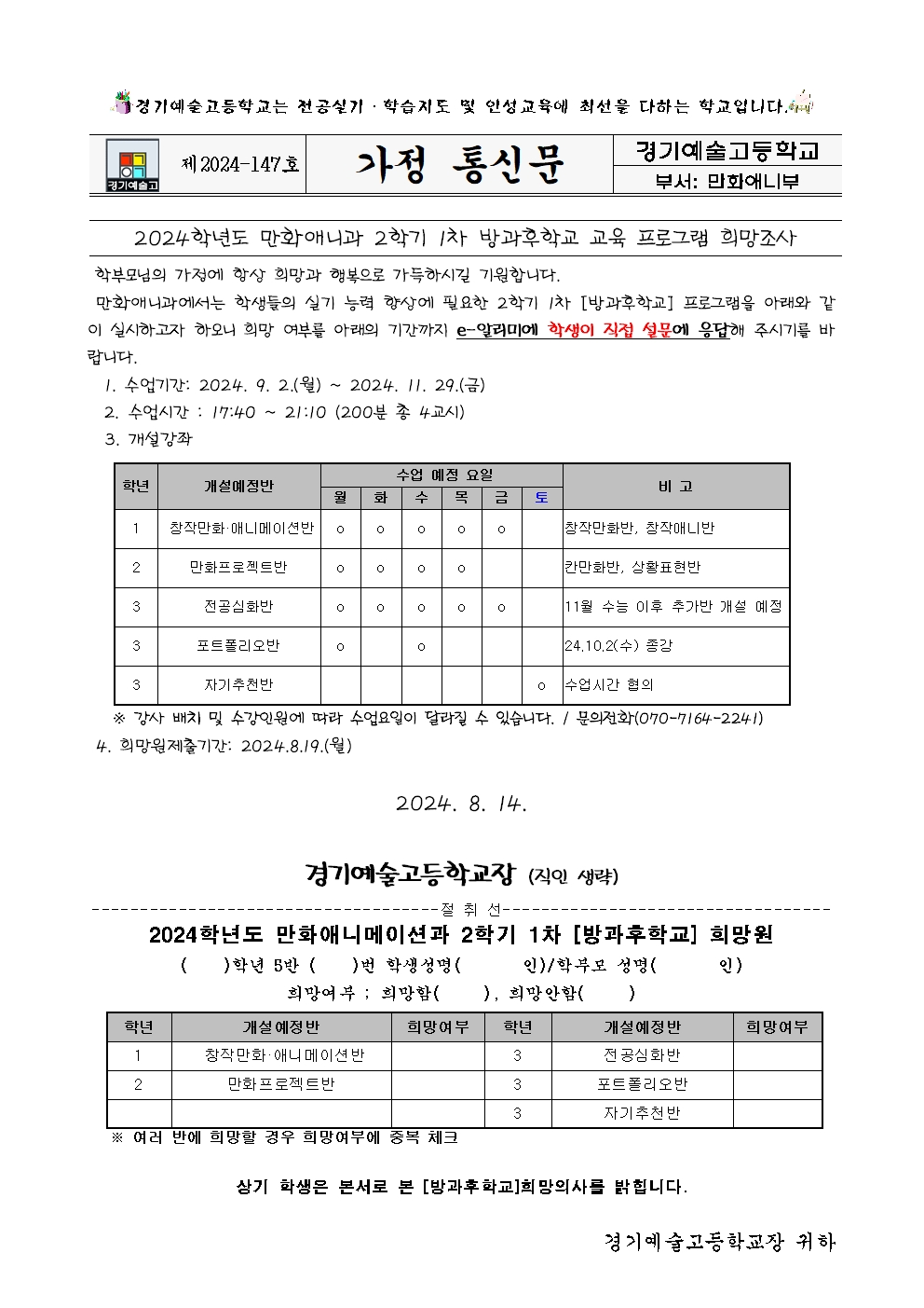Á¦2024-147È£ 2024Çг⵵ ¸¸È­¾Ö´Ï¸ÞÀ̼ǰú 2Çбâ 1Â÷ ¹æ°úÈÄÇб³ ¼ö¿äÁ¶»ç