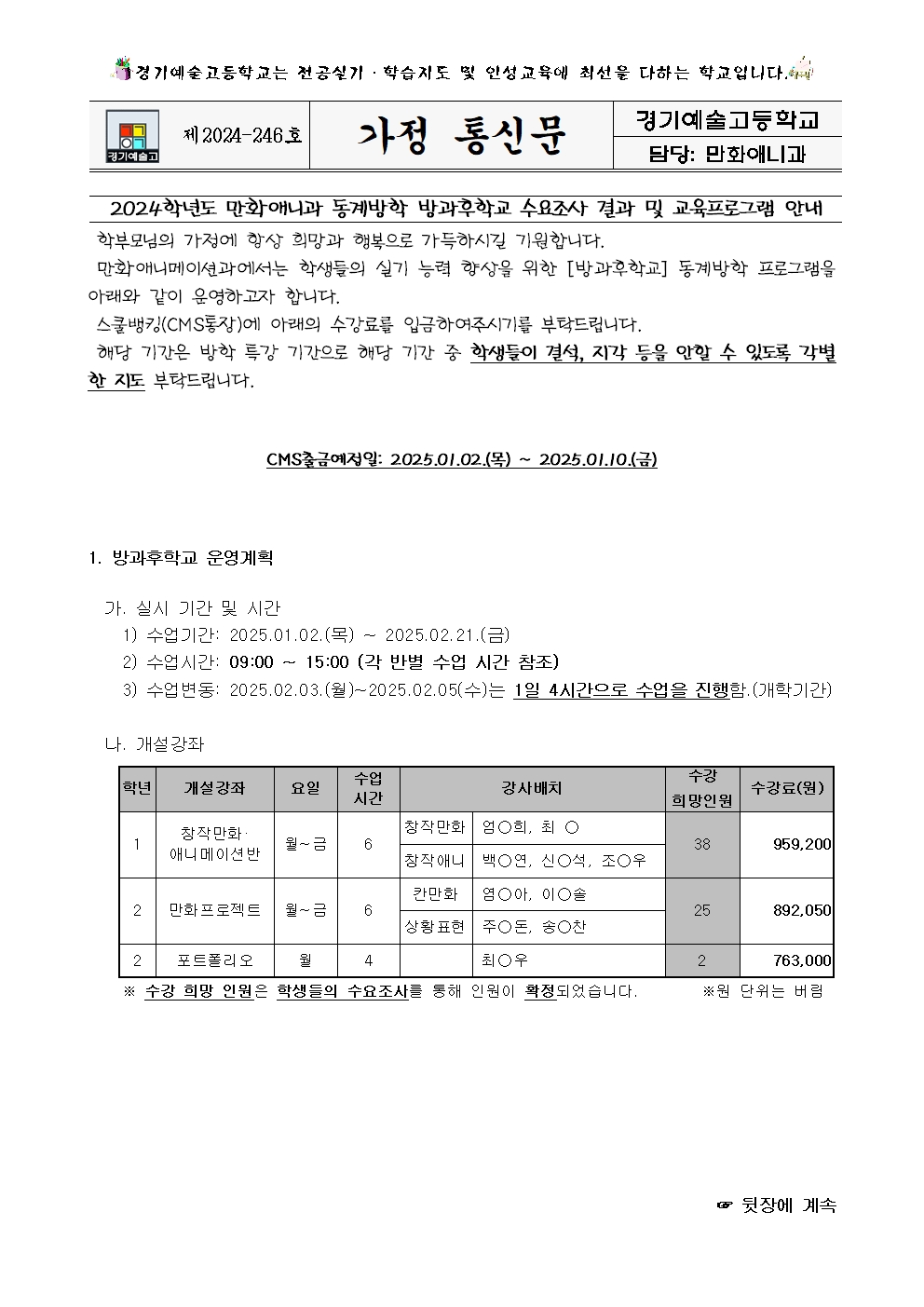 Á¦2024-246È£ 2024Çг⵵ ¸¸È­¾Ö´Ï°ú µ¿°è¹æÇÐ ¹æ°úÈÄÇб³ ¼ö¿äÁ¶»ç °á°ú ¹× ±³À°ÇÁ·Î±×·¥ ¾È³»