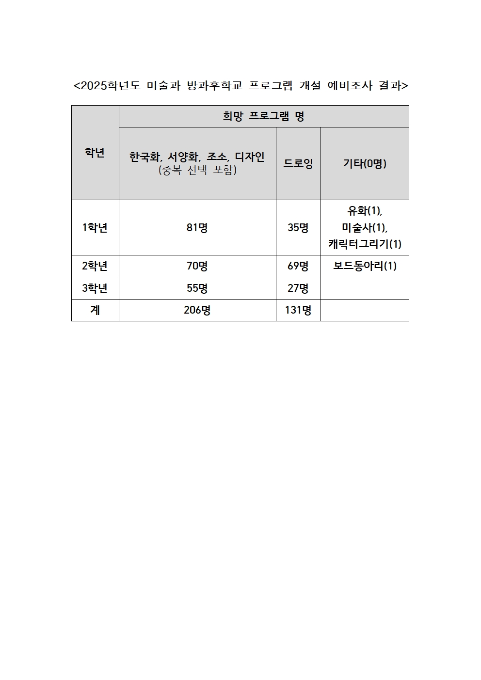2025 Çг⵵ ¹Ì¼ú°ú ¹æ°úÈÄÇб³ ÇÁ·Î±×·¥ °³¼³ ¿¹ºñÁ¶»ç °á°ú