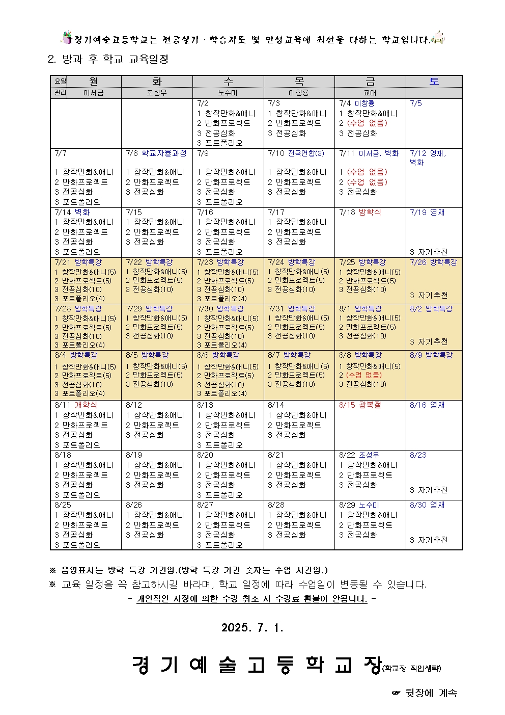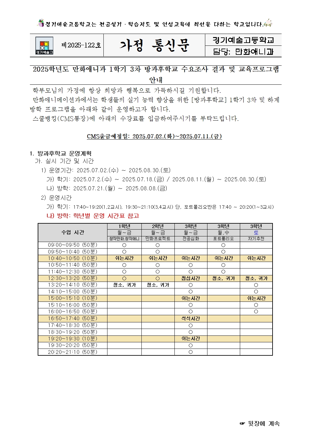 2025Çг⵵ ¸¸È­¾Ö´Ï¸ÞÀ̼ǰú 1Çбâ 3Â÷ ¹æ°úÈÄÇб³ ¼ö¿äÁ¶»ç °á°ú ¹× ±³À°ÇÁ·Î±×·¥ ¾È³»