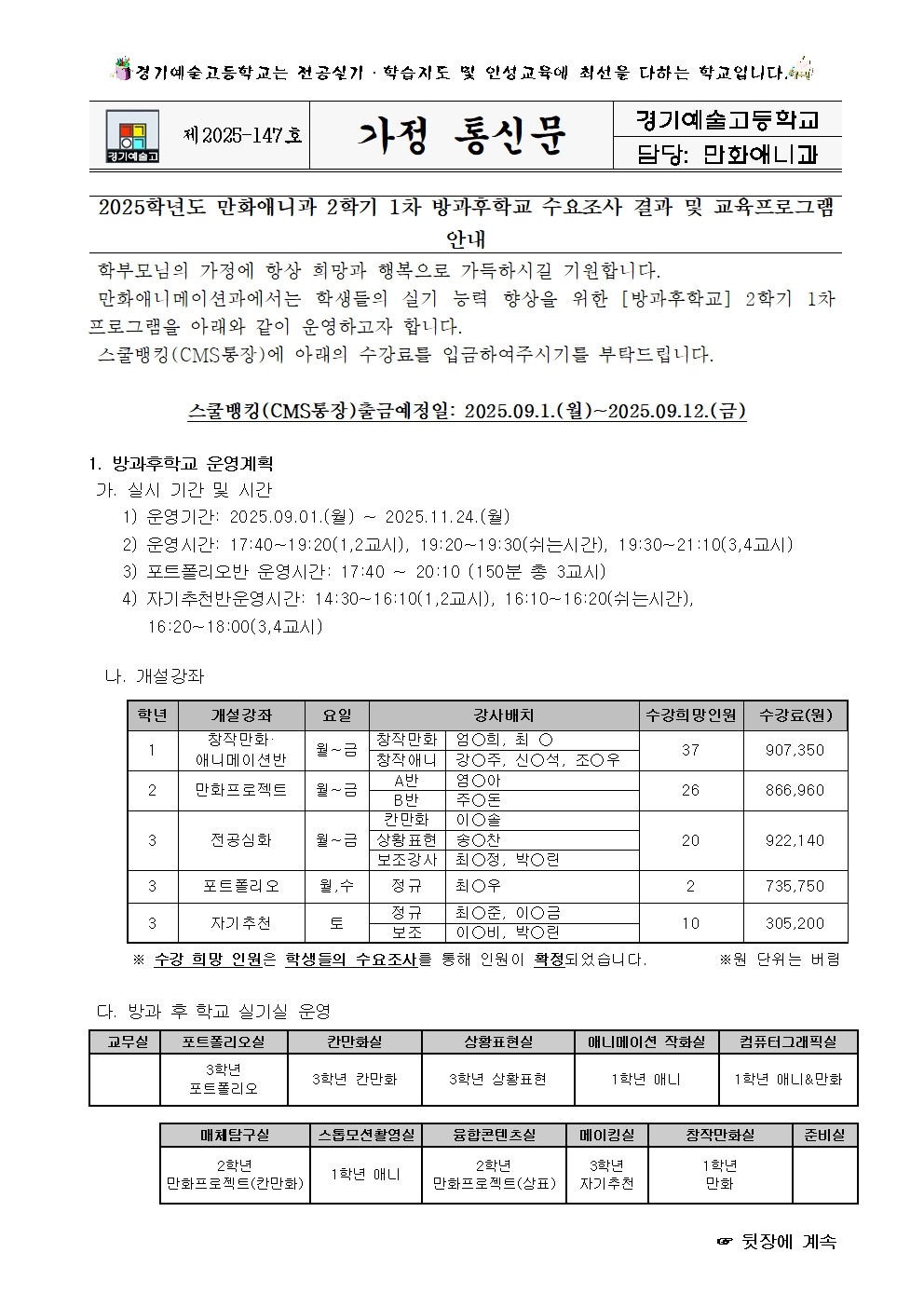 2025Çг⵵ ¸¸È­¾Ö´Ï¸ÞÀ̼ǰú 2Çбâ 1Â÷ ¹æ°úÈÄÇб³ ¼ö¿äÁ¶»ç °á°ú ¹× ±³À°ÇÁ·Î±×·¥ ¾È³»