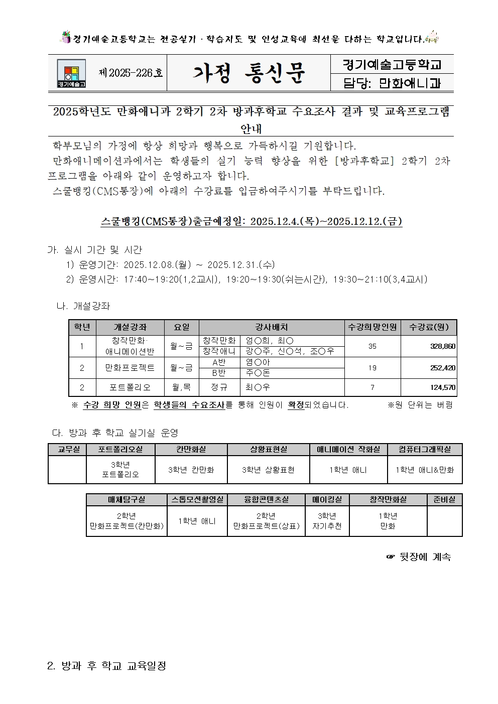 2025Çг⵵ ¸¸È­¾Ö´Ï¸ÞÀ̼ǰú 2Çбâ 2Â÷ ¹æ°úÈÄÇб³ ¼ö¿äÁ¶»ç °á°ú ¹× ±³À°ÇÁ·Î±×·¥ ¾È³»