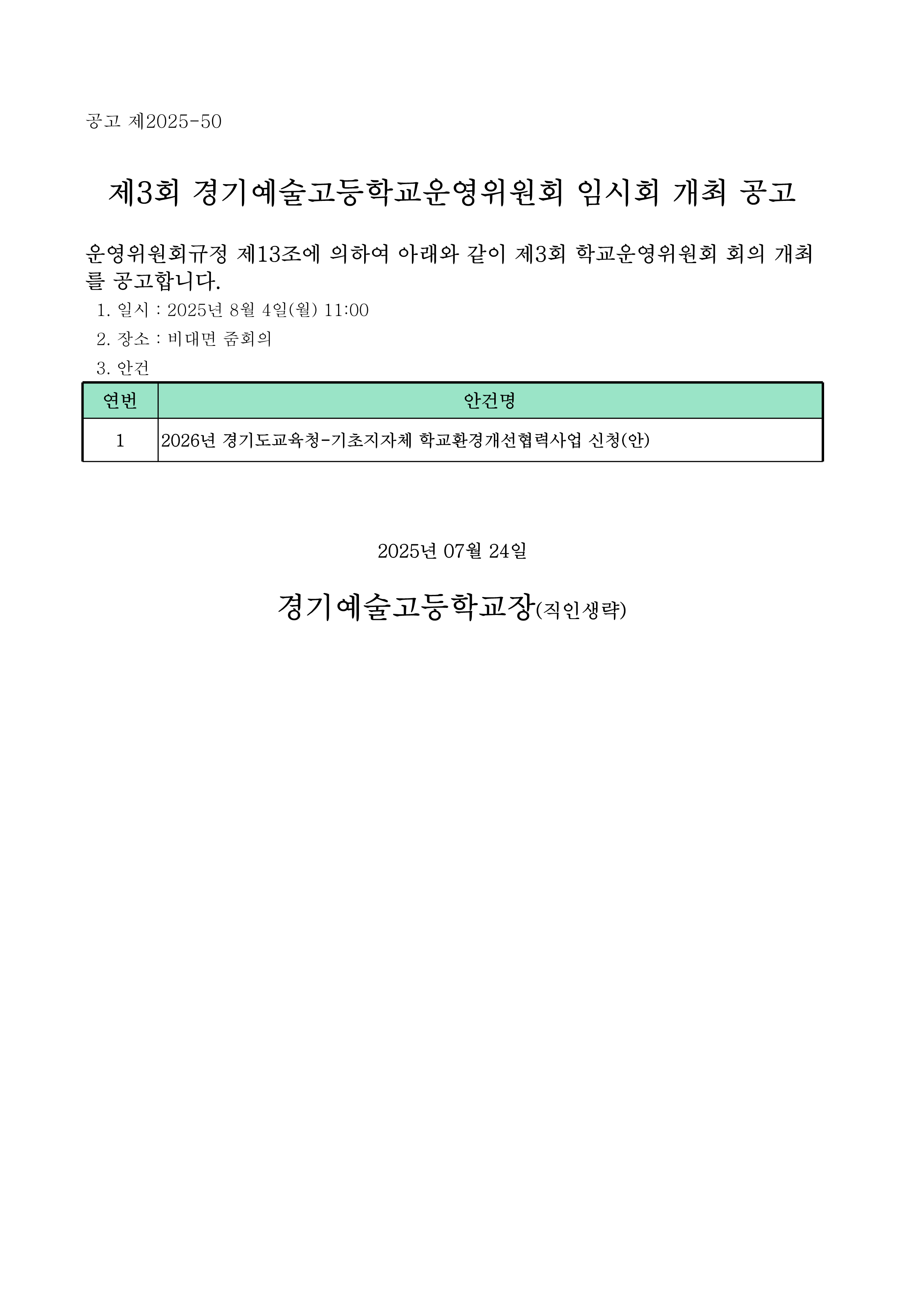 Á¦3ȸ Çб³¿î¿µÀ§¿øÈ¸ ÀÓ½Ãȸ °ø°í