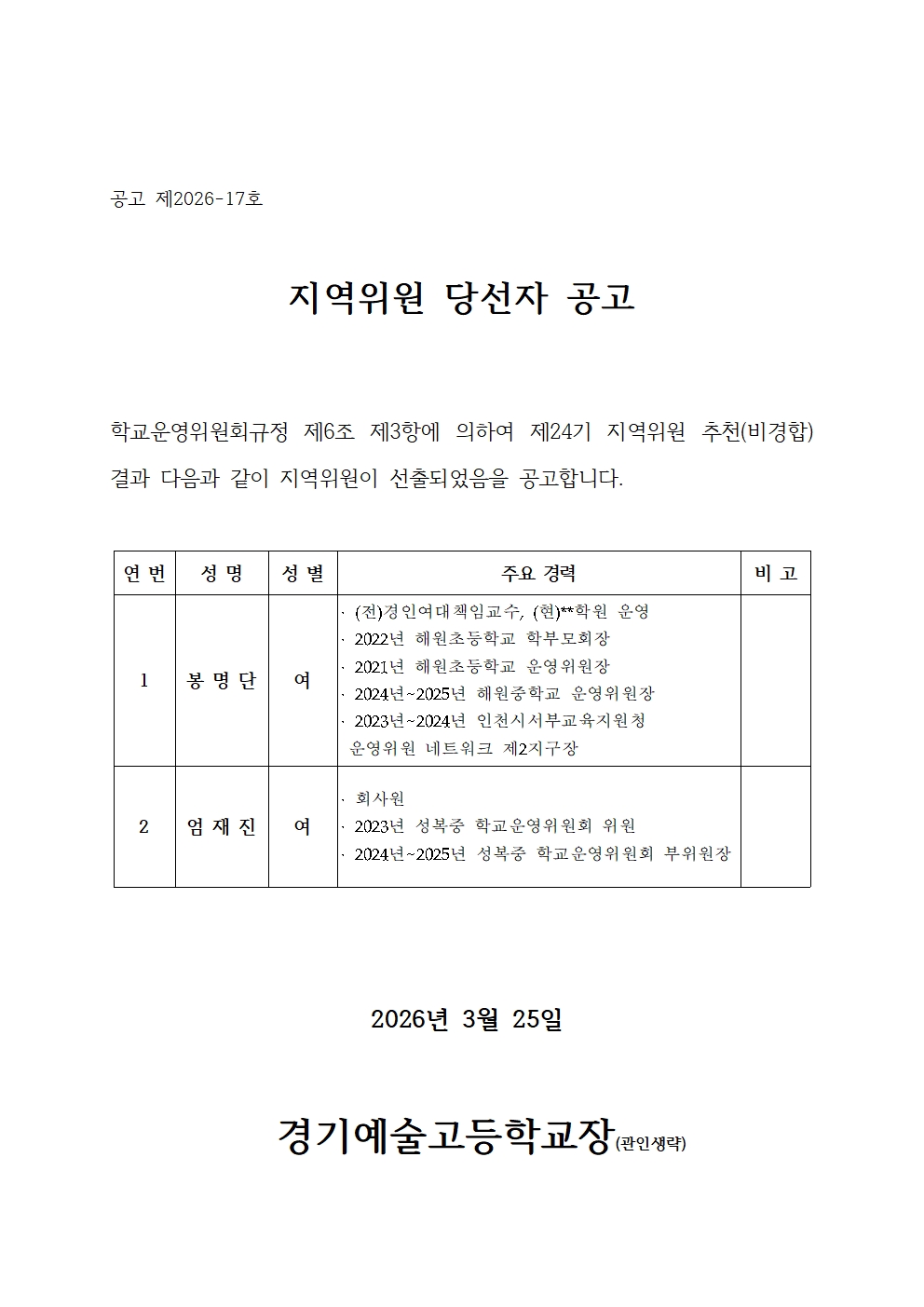 2026Çг⵵ Á¦24±â Çб³¿î¿µÀ§¿øÈ¸ Áö¿ªÀ§¿ø ´ç¼±ÀÚ °ø°í