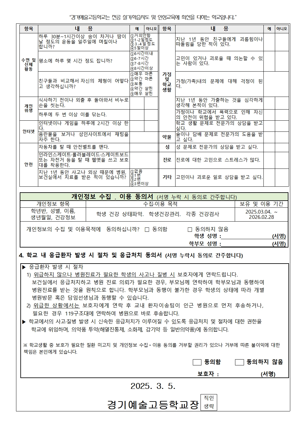 2025Çг⠵µ °Ç°­Çϰí ÇູÇÑ Çб³ »ýȰÀ» À§ÇØ °Ç°­»óÅ Á¶»ç ¹× ÀÀ±Þóġ µ¿ÀǼ­¸¦ ¹Þ°íÀÚ ÇÕ´Ï´Ù.