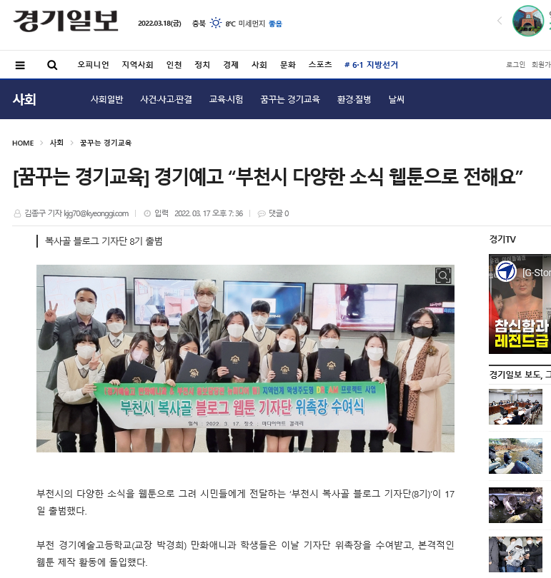 2022 °æ±â¿¹°í ¸¸È¾Ö´Ï°ú 'ºÎõ½Ã º¹»ç°ñ ºí·Î±× À¥Å÷ ±âÀÚ´Ü À§ÃËÀå ¼ö¿©½Ä'