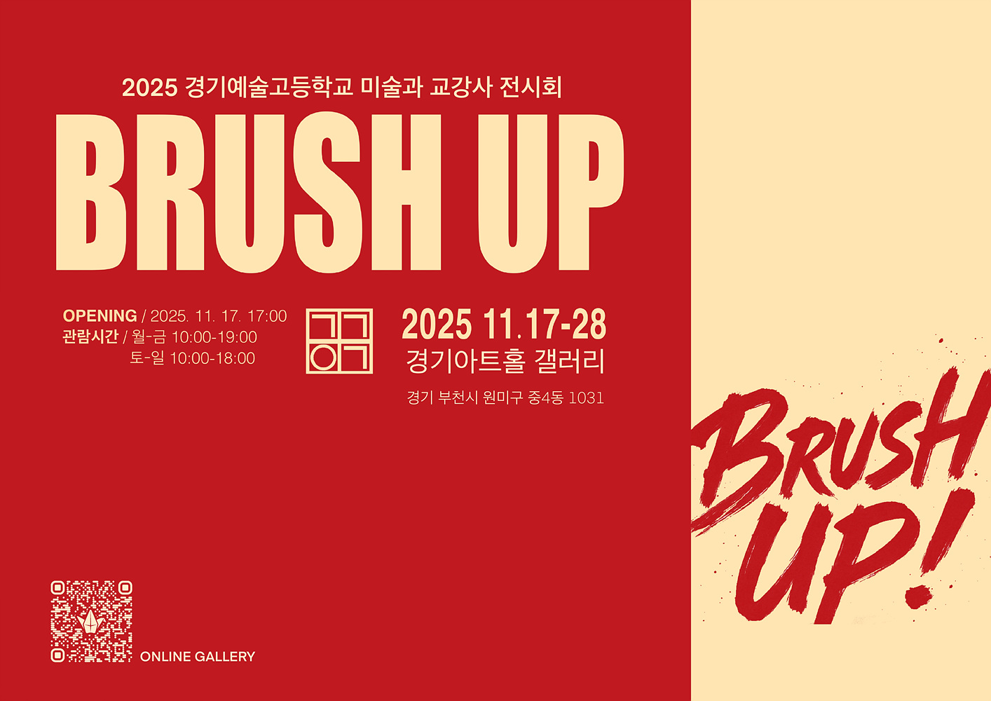 °æ±â¾ÆÆ®È¦ °¶·¯¸®¿¡¼ 2025.11.17~28ÀϱîÁö °æ±â¿¹¼ú°íµîÇб³ ¹Ì¼ú°ú ±³°»çµéÀÇ Àü½Ãȸ°¡ °³ÃֵȴÙ. Àü½Ã ÁÖÁ¦ÀÎ “BRUSH UP”Àº ÇлýµéÀ» À§ÇÑ ¼ö¾÷°ú Áöµµ ¿Ü¿¡µµ ÀÚ½ÅÀÇ °è¹ßÀ» À§ÇØ Ç×»ó ³ë·ÂÇÏ´Â ¹Ì¼ú ¼±»ý´ÔµéÀÇ ¿Á¤À» ÀǹÌÇϸç, ȸÈ, Á¶¼Ò, µðÁöÅÐ ¹Ìµð¾î µî ¾à 35Á¡ÀÇ ÀÛǰÀ» ¼±º¸ÀδÙ. Çлýµé¿¡°Ô ÀԽù̼ú¿¡ ÁýÁßµÈ ¼ö¾÷¿¡¼ Àá½Ã ¹þ¾î³ª ´Ù¾çÇÑ ÁÖÁ¦¿Í Çü½ÄÀÇ ¹Ì¼úÀÛǰÀ» ¸¸³¯ ¼ö ÀÖ´Â °è±â¸¦ ¸¶·ÃÇØ ÁÙ °ÍÀ¸·Î ±â´ëµÈ´Ù.