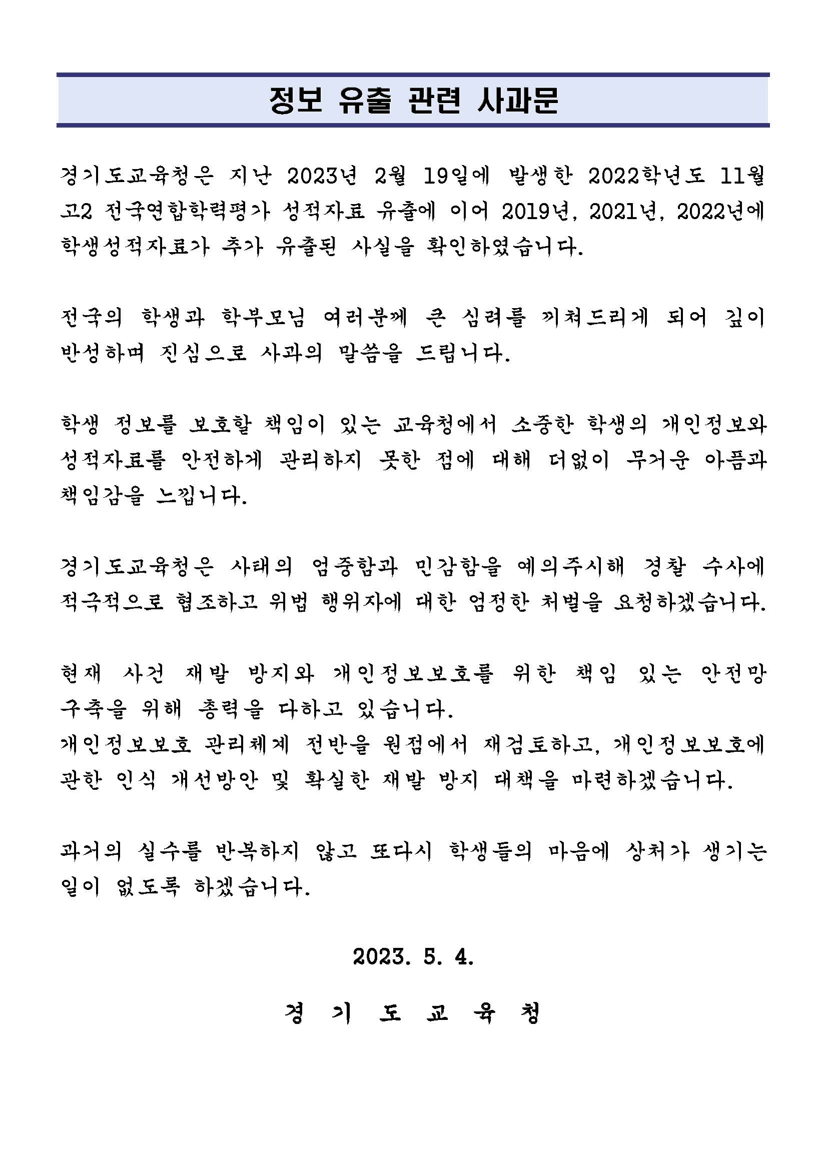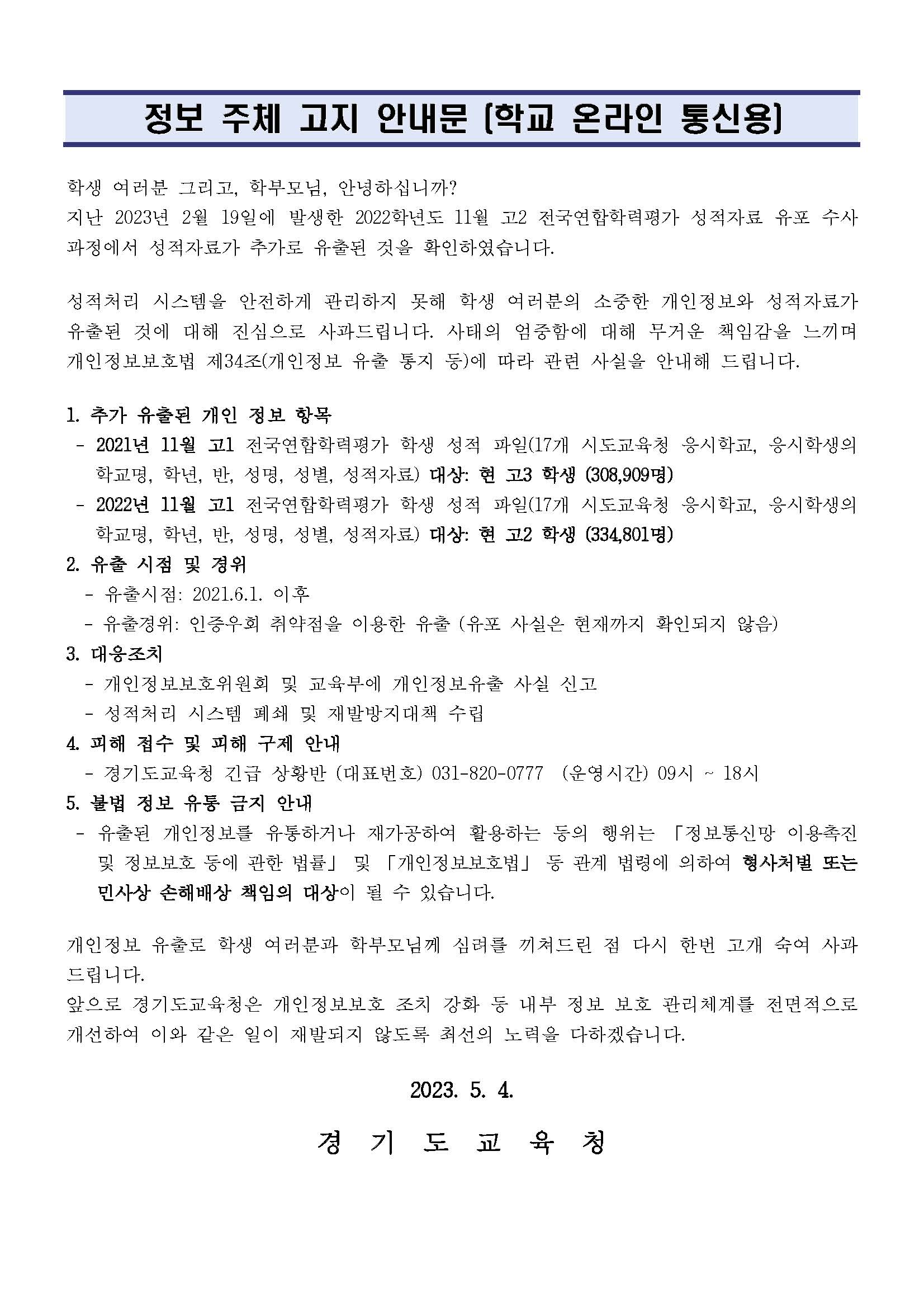Àü±¹¿¬ÇÕÇÐ·ÂÆò°¡ ¼ºÀû ¹× °³ÀÎÁ¤º¸ À¯Ãâ °íÁö ¾È³»¹®