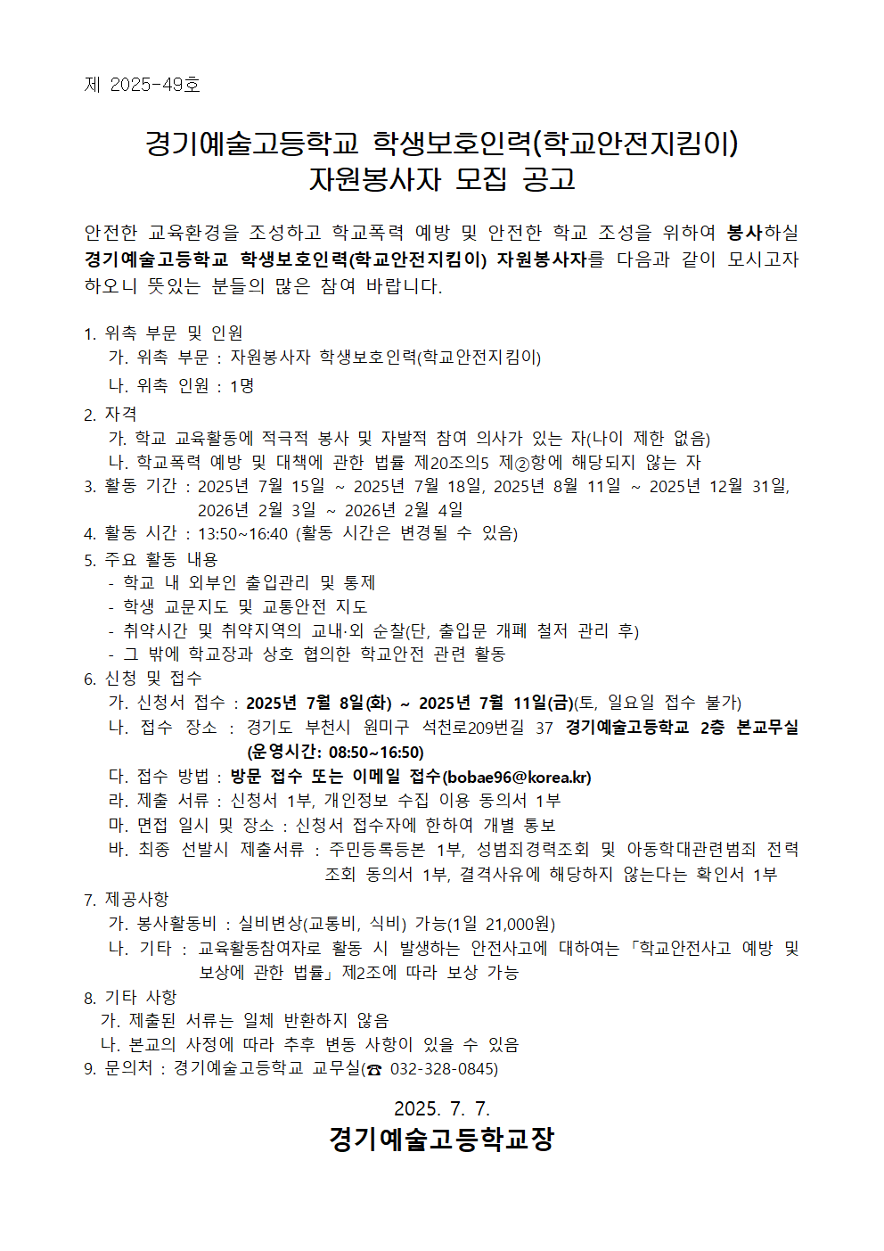 °æ±â¿¹¼ú°íµîÇб³ Çлýº¸È£ÀηÂ(Çб³¾ÈÀüÁöÅ´ÀÌ) ÀÚ¿øºÀ»çÀÚ ¸ðÁý °ø°í.hwp °æ±â¿¹¼ú°íµîÇб³ Çлýº¸È£ÀηÂ(Çб³¾ÈÀüÁöÅ´ÀÌ) ÀÚ¿øºÀ»çÀÚ ¸ðÁý °ø°í.hwp   ´Ù¿î·Îµå ¼ö : [ 14 ]